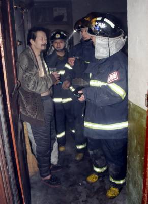 2月11日下午16:40分,郧县公安消防大队接警迅速出动很快将金沙路中段西侧一居民搂6楼起火扑灭,保护了整幢楼的安全。事故起因是该住户一40多岁单身精神病患者吸烟引发床铺起火烧掉木床引起的,该精神病患者病后烟瘾变大,每天能吸4盒烟,当天下午在被窝里吸烟时将被褥点燃让他不知怎么办,直到将被褥快烧完时被邻居发现后窗浓烟和火苗时才报119。消防大队接警后出动警力将防盗门撬开才将起火扑灭,否则该卧室内堆放的大量杂物引燃将威胁整幢搂的安全。 夲报视界网周家山 王林 摄