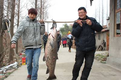 12日,潜江市运粮湖管理区一职工在一废弃鱼坑中用鱼钩挂起一条青鱼,据测量,该鱼身长1.4米,背宽0.35米,重72斤,引来人群围观,大家无不啧啧称奇。据当地百姓称,如此巨大的青鱼在家鱼品种中实属罕见。本报视界网刘军摄