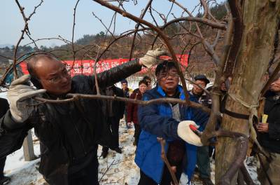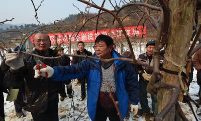 2月11日,在湖北省十堰市张湾区西沟乡白石村猕猴桃基地,林业专家开展了一对一的传教,对农民修剪后的猕猴桃果树进行了点评。随后林业专家朱先建与农民就猕猴桃果树管理问题开展了互动,他强调要赶在2月底以前树木还没萌动时及时修剪,减少树木伤流,当前下点雪没有影响。长期在外打工的王林华参加培训后表示:不出门打工了,要认真管好自家的1.5亩猕猴桃果树。