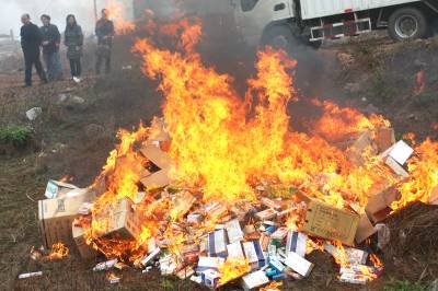 3月31日上午,在荆门市食药监局工作人员的监督下,湖北益健医药有限公司、吉林吉春制药有限公司的工作人员,将一批价值5万多元的过期(滞销)药品付之一炬。荆门市食药监局副局长黄承斌表示,两个企业此举是对老百姓负责任的好做法。据了解,从去年10月起,益健公司邀请吉春公司,在市食药监局的监管下,在全市范围内开展药品”以旧换新”活动,从各医疗单位、市民手中搜集到38件、438个品种的过期、滞销药品。视界网摄影师朱运兵摄