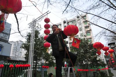 1.3万余只灯笼伴恩施市民闹元宵 2月13日,在恩施州城亲水走廊,工人师傅正在挂灯笼。 三十的火,十五的灯,按照春节习俗,在正月十五这天,群众最期盼的事就是赏花灯、猜灯谜。据恩施市相关负责人介绍,今年元宵节,恩施市共准备了1.3万余只灯笼,并将在清和园广场和桥西广场至风雨桥段亲水走廊沿线开展观灯展、猜灯谜等民俗文化活动,让州城市民过一个欢乐、祥和、文明、健康的元宵佳节。 视界网 刘伦 张正宿 摄
