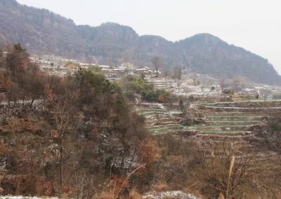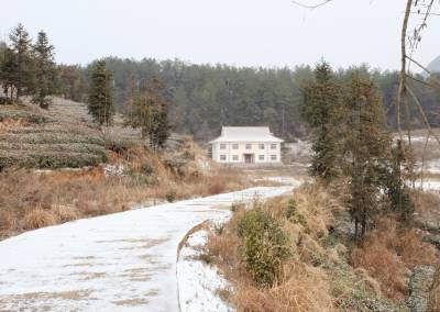 香龙山位于晓峰风景区,与南边村的大梁山相对构成了陡峭的峡谷,峡谷间就是晓峰河,即将全线贯通的宜巴高速公路顺河而建。香龙山海拔1100多米,临近峡谷的一面山峰崎峻而苍翠,山的另一面地势相对平缓,依山建有茶园、果园、稻田,因山顶就是白果树村,村里建了较大面积的银杏树苗圃。著名的白果树瀑布(三峡大瀑布)景区距此约10公里,其瀑布的发源地就在这里。这里山高田少,气候寒冷,物产贫瘠,山民除精心耕耘好现有的农田外,就是利用山地种些药材、核桃、茶叶、樱桃等经济作物,年轻人多到宜昌或省外去打工,一年下来收入也颇丰。近几年政府投资修通了从山顶连接省道的盘山路,从山顶通往城里的班车一天有三趟,留在村里的青壮年通过跑运输、给爱好徒步的驴友提供服务,生活也得到了较大的改善,不少别致的小洋楼矗立在山坳,也是一景。近日笔者趁着雪天,从峡谷一面顺着崎岖的山路,历时三个多小时的攀爬,到达山顶,用镜头记录了这里宁静而淳朴的田园风光。(视界网 丁朴报道 15872456099)
