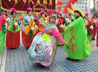 当日,在该市城区逸园广场上,人山人海,巨龙欢腾,雄狮劲舞,锣鼓喧天。来自全市各乡、镇、办事处的16支民间文艺代表队的700多名民间艺人,同台献艺,同贺新春。利川市及周边县市近万民众争相赶会,场面热烈。