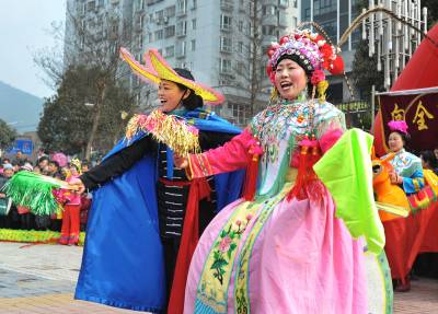 2月14日,利川市乡镇民间文艺节目会演在市城区举行。