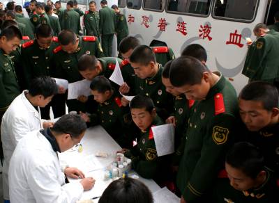 3月30日,武警黄冈市支队新训官兵无偿献血21600毫升,缓解了黄冈市中心血站库存血液不足的局面,以实际行动培育践行当代革命军人核心价值观。(郭峰摄影报道)