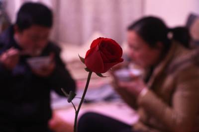 2月14日夜,竹溪县城关镇一夫妻吃元宵。当日即是元宵节,又是西方情人节,一些男士给妻子送玫瑰花,再与妻子一道吃元宵庆节,让传统元宵节中增添浪漫气息。