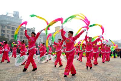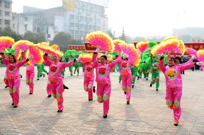 2月14日,郧县文化广场锣鼓喧天、人头攒动,来自郧县当地企事业单位的28支秧歌队踏着鼓点翩翩起舞,以传统民间秧歌欢庆2014年元宵佳节。 这些秧歌队有花伞队、腰鼓队、红绸队、花篮队,他们分别以不同的风采相继登场亮相。热闹、喜庆、祥和、多彩的秧歌表演让市民感受到浓郁的传统民俗氛围的同时,分享到了一份节日的精神大餐。(视界网签约摄影师 叶桓 摄)
