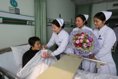 2月14日是元宵节,湖北省襄阳市第一人民医院胸外科医护人员,将煮好的汤圆端到病房住院的病人床头,为患者送上节日的祝福,祝愿他们早日康复。