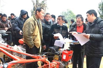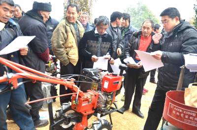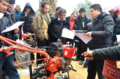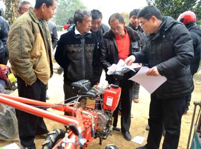 2月15日,巴东县农业局技术员正在官渡口镇沙坪村为农民发放并讲解耕田农机的科学管理、使用、维修等技术资料。 据了解,该县农民手中拥有2万余台耕田农机,其操作、管理、维修技术欠缺,为此自开年上班县农业局将组织技术员进村入户开展万名机手大培训,万台机具大检修,万台农机闹春耕活动。 向传辉 谭先勇摄 电话 18963928551