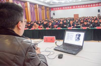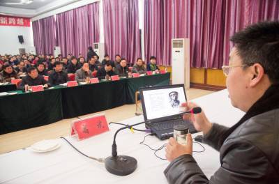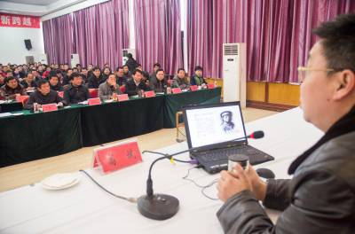 2月15日上午,云梦宾馆二楼大会议厅座无虚席。当日,云梦县邀请省委党校教授高斌给全县近300名党员干部作了一场生动、精彩的“群众路线是党的生命线”专题辅导报告。高教授通过个案,结合自己的学习心得及所见所闻,切实帮助广大党员干部深刻理解党的群众路线的丰富内涵和历史意义,不时赢得听众会心的微笑和掌声。此次辅导报告,进一步将该县的教育实践活动引向深入。 (王云清 摄)
