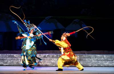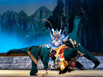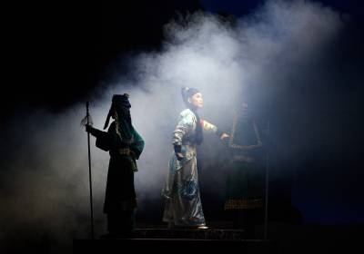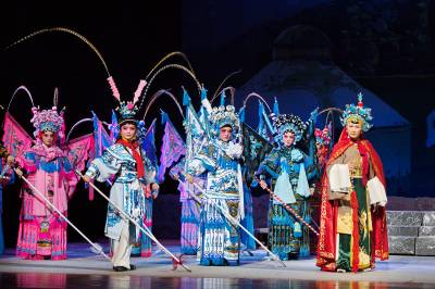 马年伊始,在黄梅戏发祥地黄梅县开展黄梅戏惠民演出,自正月初五至十九分场演出《五女拜寿》、《天仙配》、《传灯》等10个群众喜闻乐见的剧目,精湛的演出加之只要20元的票价,吸引本县和周边县市黄梅戏迷前来观看。图为《杨门女将》演出中的场景。