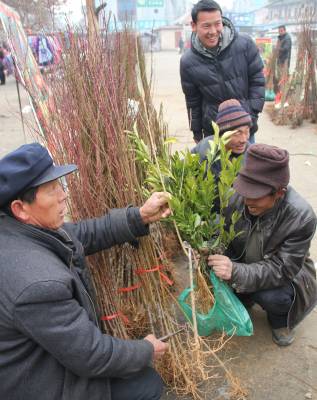 迎春苗木俏谷城 2月15日,冷集镇农民正在集市上买卖苗木。谷城县是“全国绿化模范县”,每年培育林木种苗2500亩以上。近年来,该县成立了以县长为主任的绿化委员会,严格实行领导干部任期绿化目标责任制,全民动手,义务植树,全县宜林荒山、荒地、荒滩、荒沙等宜林地段基本实现了农田林网化、河渠林带化、村庄园林化、城镇公园化的目标。 本报视界网马明刚摄