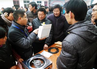 15日,巴东县官渡口镇农业服务中心技术员在讲沼气灶的正确使用方法。 近年来,巴东县大力实施清洁能源入户工程,除了推广太阳能热水器、生物质气化炉进农家外,重点鼓励农民采取“(养)猪—沼(气)—菜(果)”模式,大力建设沼气池,在发展产业的同时又实现生态环保。目前,全县已使用沼气7万余户,每年节约标煤50万吨,减排二氧化碳110万吨。按每口沼气池每年节约开支1350元计算,全县每年可节省资金近亿元。(本报视界网 梁勇 谭春蓉 摄)13986846069