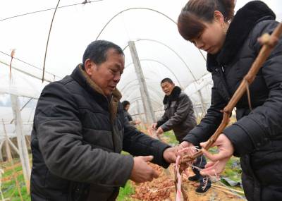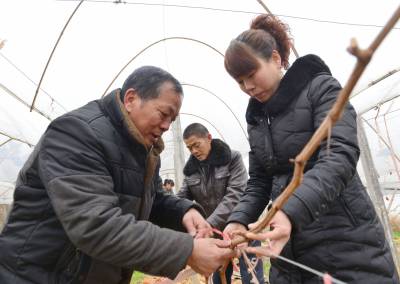 大棚里“催”春忙 2月16日,建始县业州镇牛角水村支部书记黄世阶正在避雨式红提栽培大棚里,指导果农上架管理。时下,在该村干部“催”春耕生产阵阵脚步声中,村民纷纷进大棚,忙着对红提上架、除草、施肥等春管,一派火热景象。本报视界网刘波摄 建始县新闻中心刘波联系电话13032794298