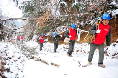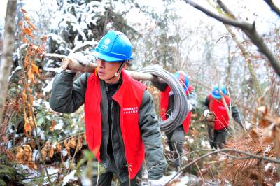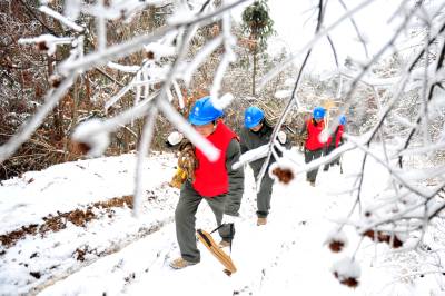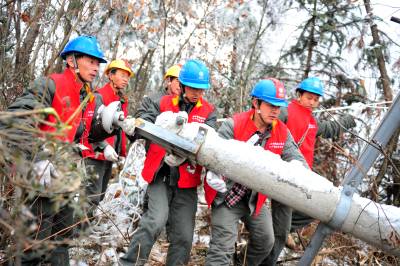 连日来,受强冷空气影响,宜昌市夷陵区邓村乡、雾渡河镇、樟村坪镇、分乡镇等高山地区连降大雪,电力线路覆冰严重,导致倒断杆等供电故障。灾情发生后,当地政府迅速组织力量检修抢修,供电部门的“红马甲”党员突击队员冲锋在前,带领200多供电员工在山野一线战冰雪、抗严寒,抢修供电线路,千方百计保障了灾区群众供电。