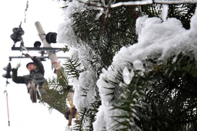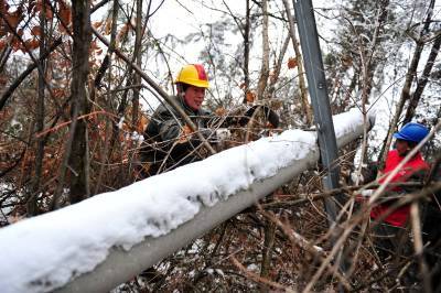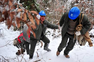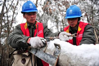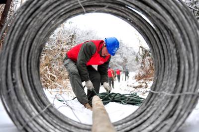 据悉,2月9日以来,湖北鄂东、鄂西北等地山区持续降雪,国网湖北省电力公司1000多名线路维护人员对输电线路采取特巡和除覆冰及清障作业,确保电网安全稳定运行。本报视界网 张国荣 摄