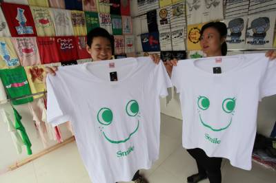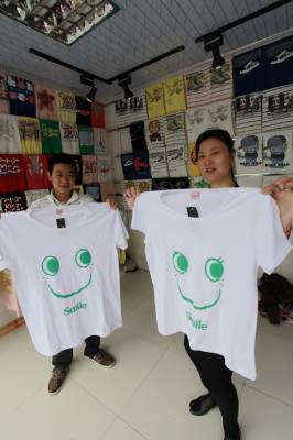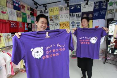 情侣卡通T恤早上市4月1日,两个年轻人正在展示情侣卡通T恤。虽然宜昌城区的天气还较为凉爽,但在西陵一路这家情侣卡通T恤专卖店里,琳琅满目,彰显个性的情侣卡通T恤依旧受到行人关注。本报视界网黄翔摄
