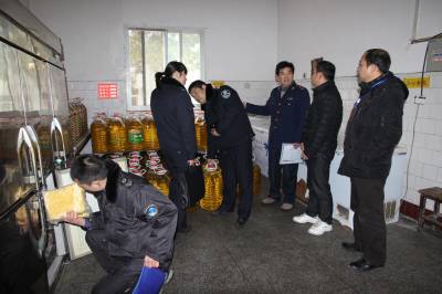 (通讯员 苌晓昱摄影报道)2月18日,丹江口市卫生监督部门对该市一中食堂进行食品安全检查。(图)