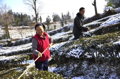 > 茶园里“赶”雪忙(彭绍峰摄)
