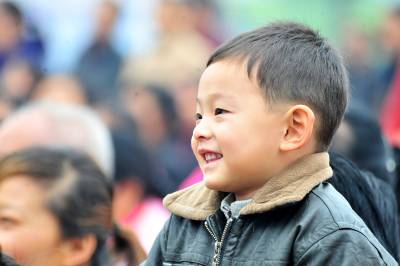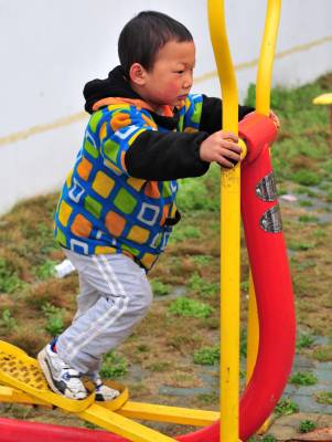 2010年3月30日,湖北宜昌夷陵区新型农民教育试点活动启动仪式上,太平溪镇许家冲村的儿童在快乐地玩耍。 本报视界网张国荣摄