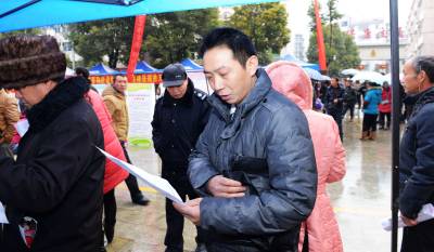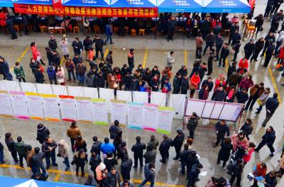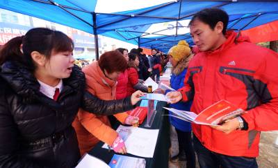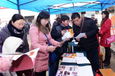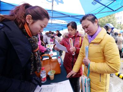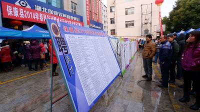 2月18日,求职者在用人单位招聘摊位前应聘。 当日,保康县举办春节后的首场“春风行动送岗位”大型招聘会,来自省内外的近30家用人单位提供就业岗位5400多个,近5000名求职者达成就业意向。 据了解,“春风行动送岗位”大型招聘会由该县人社、工会、妇联、残联4部门共同主办,旨在积极为求职者和用人单位搭建沟通桥梁,搭建供需平台,促进就业创业,活动将持续到3月中旬结束。(本报视界网 陈泉霖 冯少华 摄)13476356829