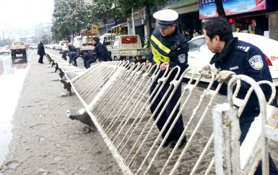 > 交警雪中保安全