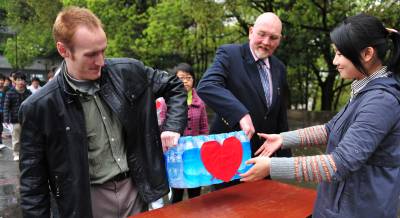 > 老外心系西南旱灾区