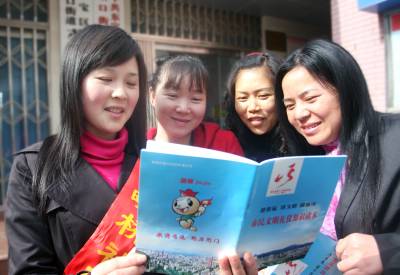 4月1日,荆门市东宝区泉口街道苏畈桥社区志愿者在向居民讲解”迎省运,讲文明,树新风”文明礼仪知识。据了解,随着湖北省十三运会的临近,荆门市不少社区组织辖区居民学习礼仪知识,以努力提升自身文明素质,为省十三运会营造良好的氛围。荆门晚报记者张庆摄