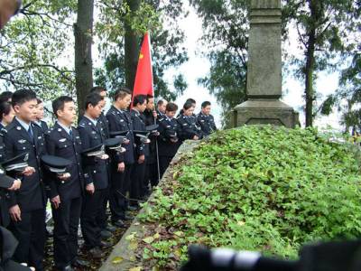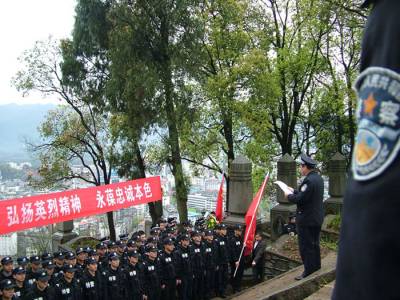 清明时节雨纷纷,4月1日,恩施市公安局组织新录用的29名普警和50名特警,先后前往五峰山烈士陵园和何功伟、刘惠馨烈士陵园,实地接受革命传统教育。上午9时许,民警们在政工监督室主任刘红的带领下来到五峰山烈士陵园,向烈士们敬献花圈和花篮,并在公安部二级英模、因公殉职民警卢在武墓前脱帽默哀,聆听了卢在武为维护社会治安而献出宝贵生命的英雄事迹。随后,民警们又来到位于城郊的何功伟、刘惠馨烈士陵园,在烈士的墓前聆听了革命先烈的英雄事迹,敬献花圈和花篮并默哀致敬,重温人民警察誓词。通讯员周光兵摄恩施日报社记者部周光兵13277584567图一:聆听卢在武的英雄事迹。图二:在卢在武烈士墓前默哀。图三:何功伟、刘惠馨烈士陵园的途中。图四:聆听何功伟、刘惠馨烈士的英雄事迹。图五:烈士墓前重温人民警察誓词图六:烈士墓前打扫卫生。