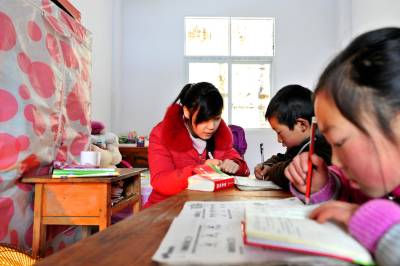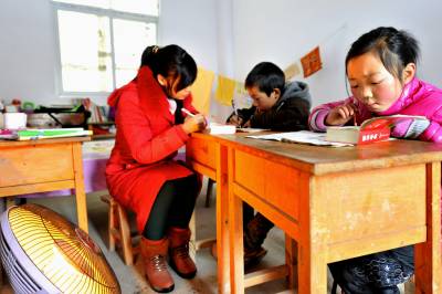 2月19日,在位于海拔1675米的巴东县官渡口镇南荒岭村小学,该校年轻女教师付美龄在自己寝室开着电暖器同时为两名学生上课。因为来电了,一旁红彤彤的电暖器驱散了寒意,师生三人的喜悦之情溢于言表。