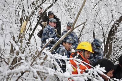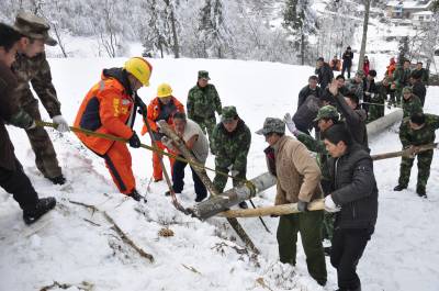 雪灾现场 巴东官兵在行动(图)
