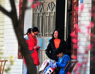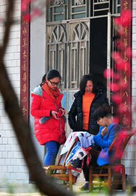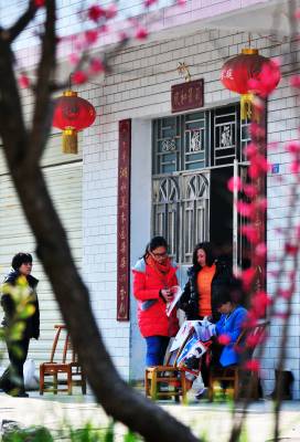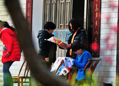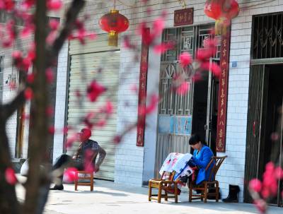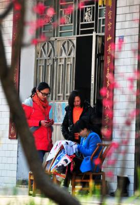 20日,巴东县官渡口镇西瀼口社区居民在悠闲自得的十字绣、看书,腊梅花开朵朵艳。 据了解,西瀼口社区是前三峡库区移民村庄,通过整体搬迁和十多年的建设,社区不仅基础设施完善了,产业壮大了,交通更便利了,而且老百姓的日子越过越红火,居住环境越来越美,成为神农溪畔一颗耀眼的明珠。(本报视界网 梁勇 摄)13986846069
