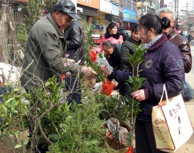 2月22日,黄梅县市民正在苗木交易市场购买优质树苗。立春以来,该县抢抓春季绿化季节,发动干群大力植树造林、美化家园,全县掀起了全民植树造林热潮。(本报视界网 吴志雄 摄)