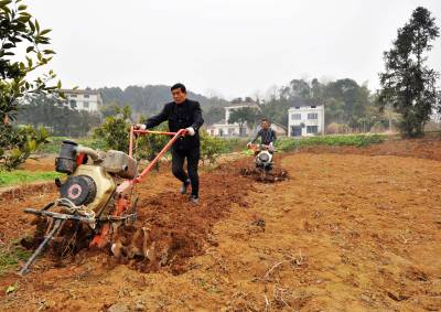 “铁牛”闹春耕 2月22日,宜都市枝城镇官坪村二组魏万玉的农田里,二台微耕机在耕地。据农机部门提供的数据,枝城镇共有微耕机900多台、大中型农机30多台,传统的耕牛耕地基本退出历史舞台,取而代之的是“铁牛”耕地。