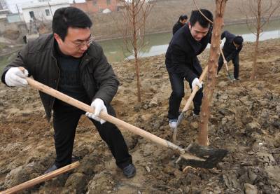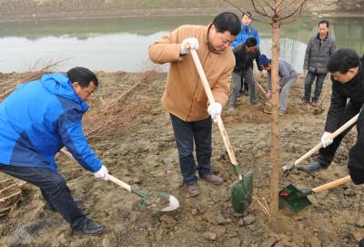 新春栽植“活化石” 2月21日,潜江市机关工作人员来到高石碑镇兴隆河畔义务栽植“活化石”水杉。地处南水北调、引江济汉工程所在地的兴隆河流域有树龄在30年以上的水杉10余万株。今年该市将对兴隆河10公里长的段面进行更新造林,新栽水杉公益林3万株。潜江被誉为水杉的第二故乡,至今水杉发展为1000多万株,是全国重要的水杉苗木基地。