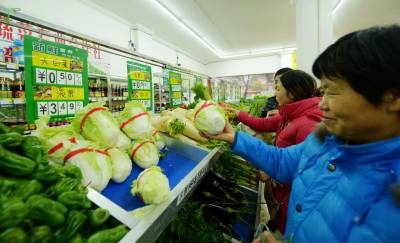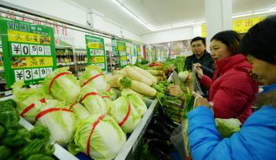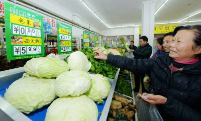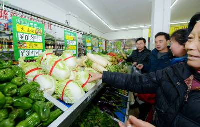 2014年2月24日,市民在保康县县城河西平价蔬菜超市选购新鲜平价蔬菜。