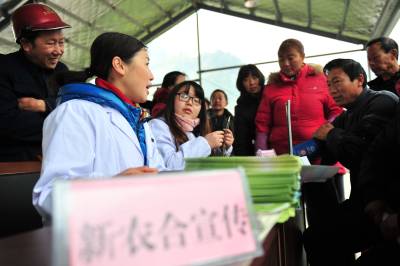 2014年2月24日,湖北省卫生计生委发布消息,该省加大对农村卫生投入,参合农民可享受更多补贴大餐。今年,湖北参合农民人均筹资水平提高到390元,门诊统筹补偿比达到50%以上,住院报销最高达到75%,基本医疗补偿最高可达10万元。同时进一步落实新农合大病保险制度,新农合大病保险保费从新农合基金提取,参合农民不需再交费用。大病保险起付线标准统一为8000元,对年度内,参合农民个人自负合规医疗费用8000元至3万元部分报销50%;3万元至5万元部分报销60%;5万元以上部分报销70%,年度内大病保险报销最高可达30万元。截止目前,湖北新农合参合率达到99.2%,筹资规模达143.1亿元。 本报视界网 张国荣 摄