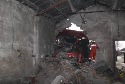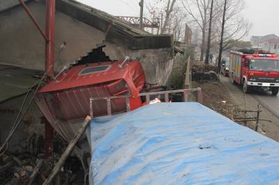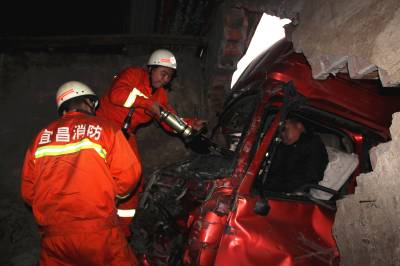 > 当阳:大挂车撞进厂房 消防救出被困司机