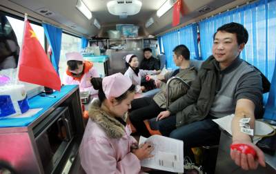 2月25日,孝感市图书馆职工张亮和谭义斌结伴走进流动献血屋无偿献血,2位年青人都是O型血,让医务人员高兴不已。连日来因低温和阴雨天气,无偿献血者减少,导致孝感中心血站库存血液下降,特别是O型和A型血。孝感市文体系统干部职工获悉后,纷纷踊跃献血共计5000毫升。 签约摄影师 晏美华 摄