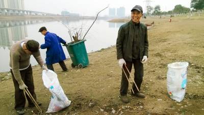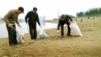 2月22日,孝感城区槐荫公园滚子河畔,几位老人在河滩上清理垃圾,他们身后是清洁一新的美丽河畔和开心游玩的市民。据悉,有8位老人长期在该公园做日常清洁,当前正是踏春时节,让市民享受公园的美丽洁净,老人们不亦乐乎。 签约摄影师 晏美华 摄
