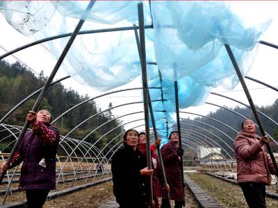 山乡娘子军,春耕挑大梁 2月26日,来凤县革勒车镇“山乡娘子军”的妇女们在烟叶育苗基地搭建育苗大棚。该娘子军由28名在集镇送学生的留守妇女组成,她们不仅是周边产业基地的主要劳力,而且还是困难群体农忙时节的主要劳力。 本报视界网 姚丙然 来凤县革勒车镇文化服务中心 电话:13997799385
