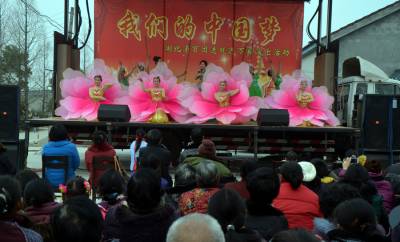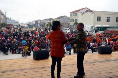 “我们的中国梦”湖北省百团送戏进万家活动在全省展开。2 月22日下午,荆州市文广局组织市艺术剧院送戏下乡到荆州区郢城镇海湖村。该村近千名村村民在家门口观看了一场精彩的歌舞、小品及戏曲等节目,让群众享受到了一场丰盛的文艺大餐,受到了农村广大群众好评。 荆州市荆州区郢城镇文化站 李德新摄 电话:13986666862