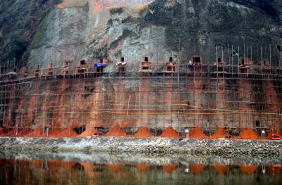 2月26日,恩施市亲水走廊六期栈道工程正在紧张建设。 恩施市地处山区,城区内多是山体,该市亲水走廊沿清江而建,概算总投资近2亿元。建设过程中依山就势而建,沿途建有独具特色的栈道,建成后将成为城市的新景观。本报视界网 王波 摄