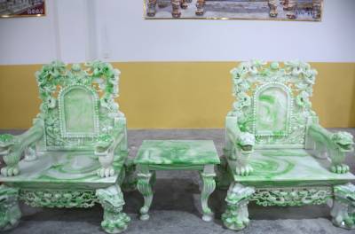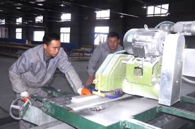 2月26日,宣恩县椒园工业园区内的湖北立翔工艺开发公司员工正在加工玉石楼梯扶手。 公司负责人伍忠立介绍,由该公司投资9000万元研制建成的国内首条人工玉石生产线,可生产电视背景墙、楼梯扶手、板材、家居装饰、家具、工艺品6个系列的玉石产品,产品具有耐磨、阻燃、无辐射、永不褪色、表面硬度是木质家具的30倍等特点。试产2个月来,已有板材、沙发、楼梯扶手3个系列的玉石产品销往湖南市场,实现销售收入30万元。 (本报视界网 汪盛华 、陈欣蓉 摄)