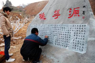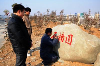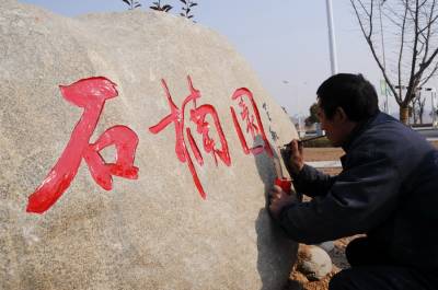 2月27日,园艺师正在郧县汉江南岸的经济开发区将书法作品雕刻在各处景点的奇右上,从而使各景点和街道旁在绿化,美化,净化,香化,靓化的基础上提档升级成文化园,近几年来郧县开发区投资数亿元外修生态内修人文,使文化品味建设再上新台阶。 夲报视界网周家山 罗静摄
