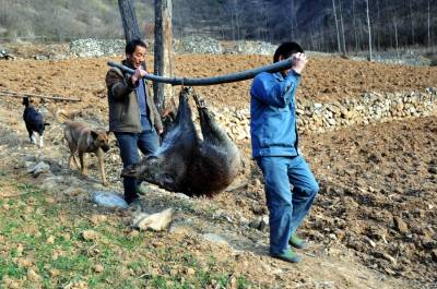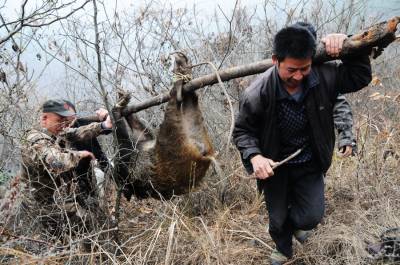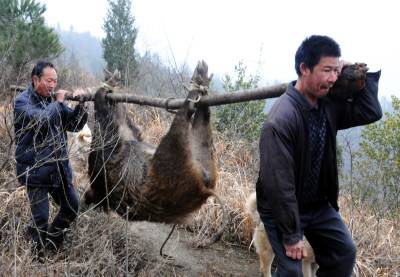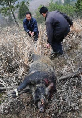 郧县冬季猎野猪服务三农行动年前结朿,根据省公安厅安排郧县公安局狩猎队为支持三农服务三农从2013年10月至2014年2月共限量猎杀毀农庄稼野猪150头。 夲报视界网周家山 摄