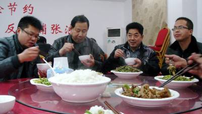 26日,丹江口市在一天里先后举行教育工作会议及教育专题会议共三个。参会中小学校长在午后奔赴两个示范学校观摩学习。午间在市教育局食堂工作餐,主食大米饭,主菜四盘炒菜,外加一盘腌萝卜干。谈笑风生中,家住乡下的参会人员与部分参会的局领导乐呵呵地谈论着上午的会议,吃着香喷喷的米饭。没有推杯换盏,没有你敬我饮,仅仅20多分钟,30多名就餐者就兴致勃勃地吃饱离去。