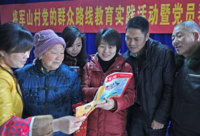 机关干部与农村党员同上一堂课 2月28日,湖北省宜都市委宣传部干部在潘家湾土家族乡将军山村与村干部和老党员一起交流学习党的群众路线教育实践活动相关的学习体会。当天,该村举行党员大会 ,请组织部相关负责人上党课,就群众路线教育实践活动进行宣传动员。联系该村的市委宣传部干部与联系村党员干部一起同听党课,同受教育。并结合该村实际商定了今年兴办十件实事的具体方案。 宜都市委宣传部:曹礼达摄 电话:13872539969 邮编:443300
