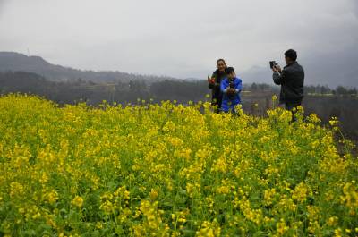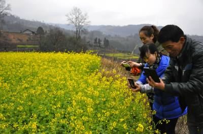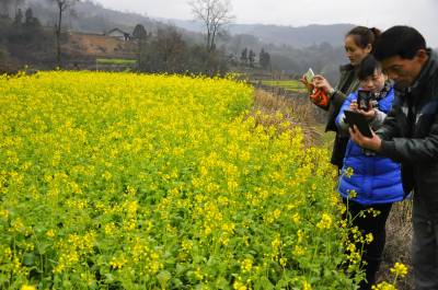 “花海”惹人醉 2月28日,在恩施市红土乡稻池村,几名男女青年利用手机拍摄迷人的花海,金灿灿的景色。 近几年来,该乡组织农户利用冬闲田地种植油菜,帮助农户增加收入。每年的2月下旬到3月初,是油菜花开得最盛、最灿烂的时候。眼下正处于开花结荚期的油菜花,不如走出屋子,品赏这宛若流金的花海,放松身心,似乎让人感受到了春的苏醒和一丝丝暖意。(本报视界网彭绍峰摄)