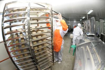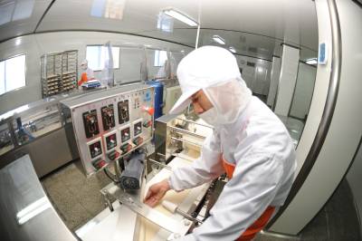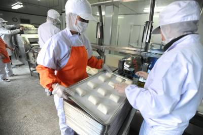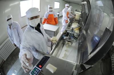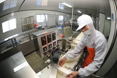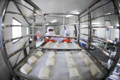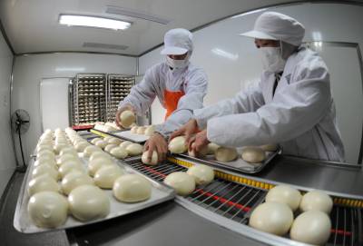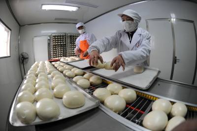 3月1日,在湖北省襄阳市樊城建设路,由7名下岗职工联合创办的襄阳蒸食好食品有限公司,工人在紧张生产,保证供给。前不久,该公司获得襄阳市目前唯一的一家获得馒头生产许可证(QS)D 认证。据介绍,公司投资80万元购进了目前国内最先进的馒头生产设备,利用优质小麦粉和先进的生物发酵技术,应用仿生技术、光控光感技术、电磁感应技术、低温蒸汽技术等生产出来的馒头断面达到300多万层,日产馒头7500公斤(60000个),口感和外观都全面超越传统手工馒头,蒸食好公司的馒头销往市区各大超市。